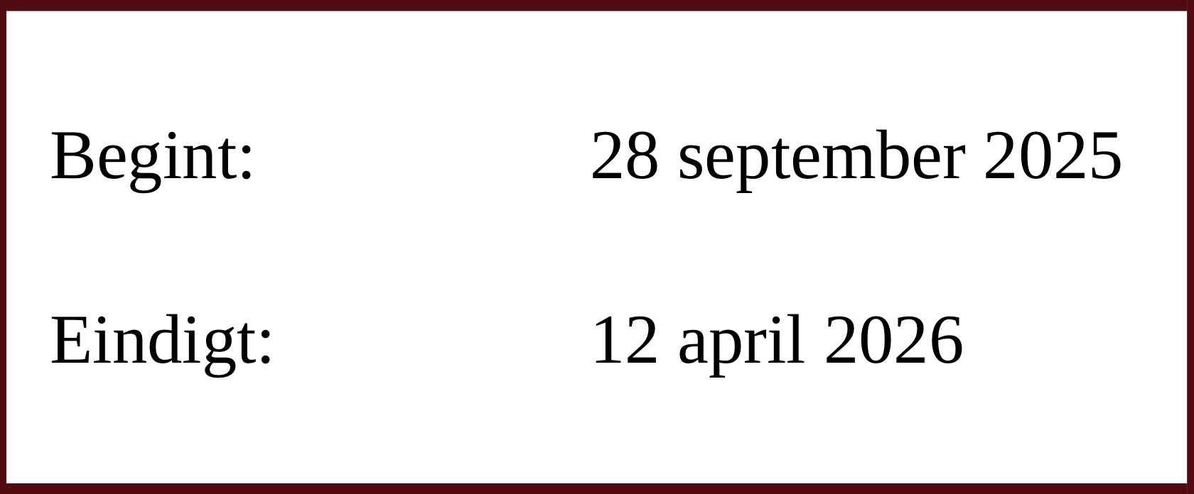 De data voor de conferenties in 2025 zijn: 28 september, 26 oktober (zomertijd), 23 november en 21 december. In 2026 zijn de data: 4 januari, 1 februari, 1 maart, 29 maart (zomertijd) en 12 april.