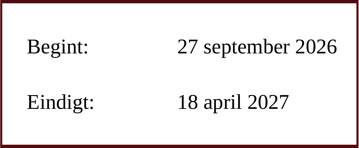 De data voor de conferenties in 2026 zijn: 27 september, 25 oktober (zomertijd), 22 november en 20 december. In 2027 zijn de data: 10 januari, 7 februari, 7 maart, 4 april (nieuwe tijd) en 18 april.
